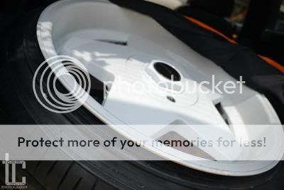 Very small amount of curb rash on one of the front wheels, and one of the rear wheels powdercoats is a shade off, but not noticeable.