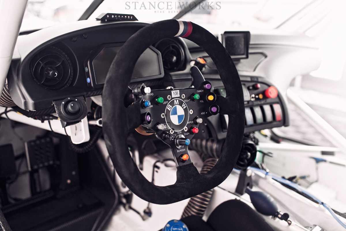 The 15-minute qualifying session took place in the setting sun of Friday afternoon. With just enough time for a few strong laps, the competition is tight and at a peak. It’s every team’s chance to place themselves at the front of the grid, which can make or break a race, and has many times before. Behind the wheel of the Frozen Black #55 car is Bill Auberlen, BMW’s right-hand long-time racing driver, and Maxime Martin, the team’s new recruit. In the classic white #56 car are teammates Dirk Müller and Joey Hand, powerhouses in every way imaginable, whom landed their own 2nd-place finish together in Long Beach last year in the E92 M3.