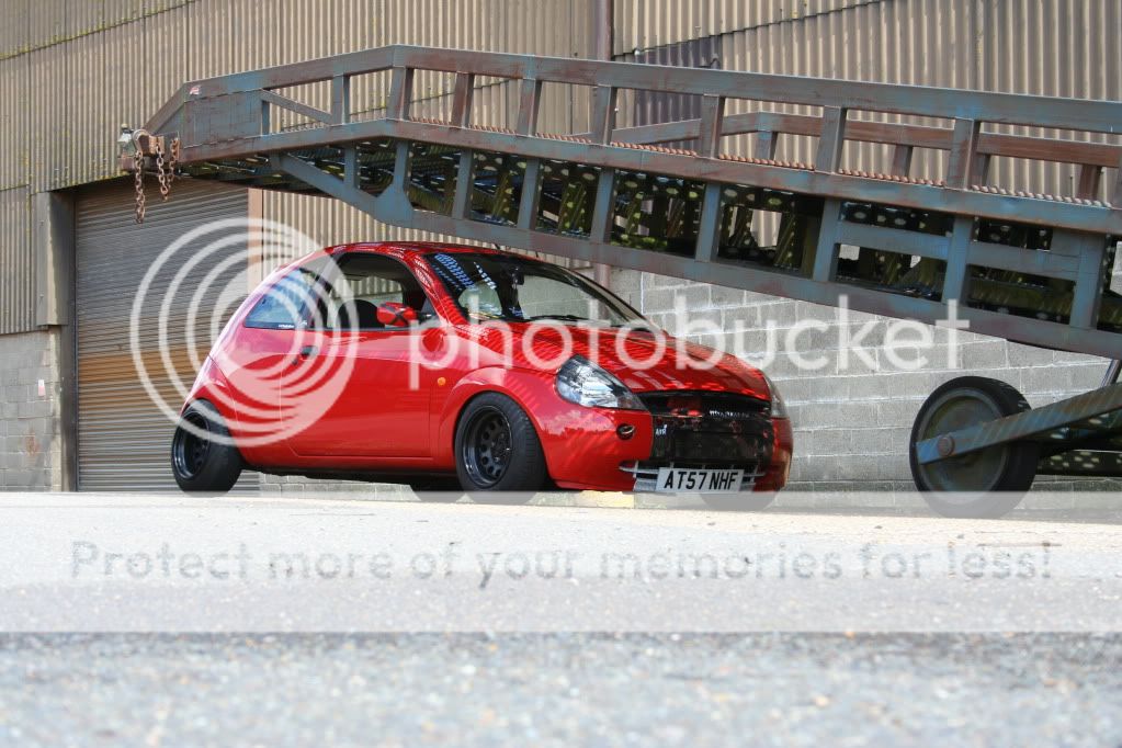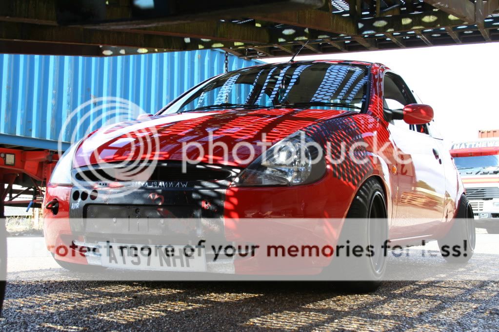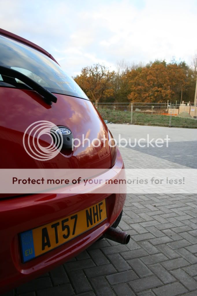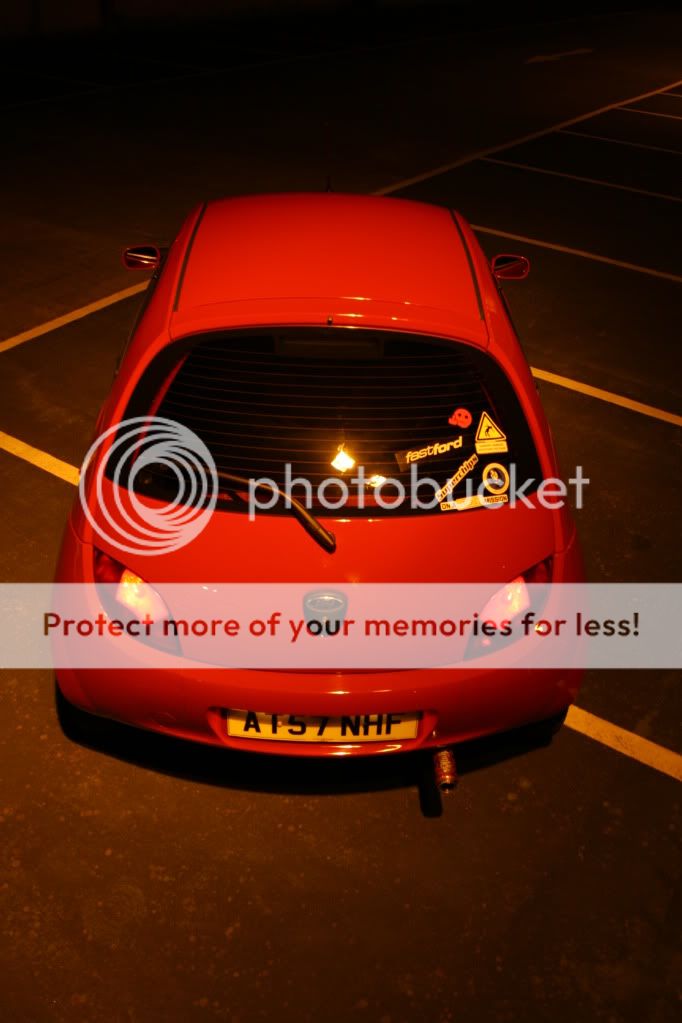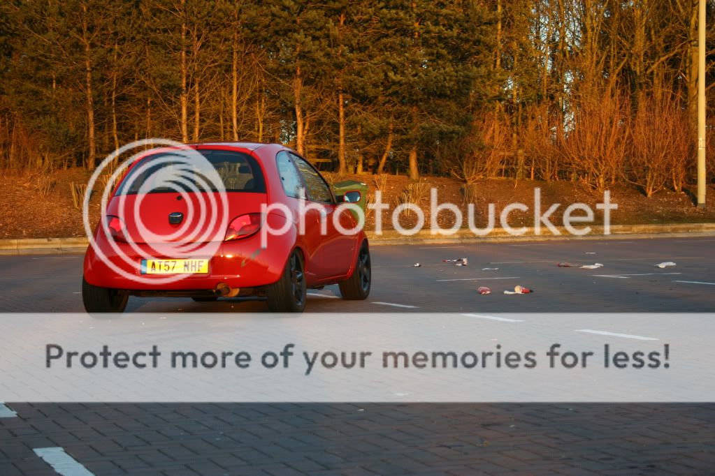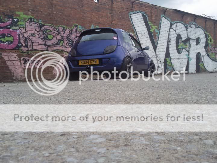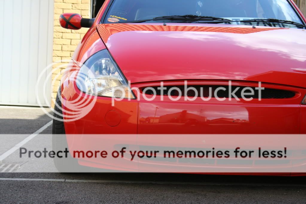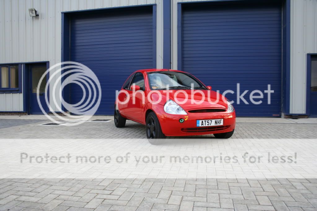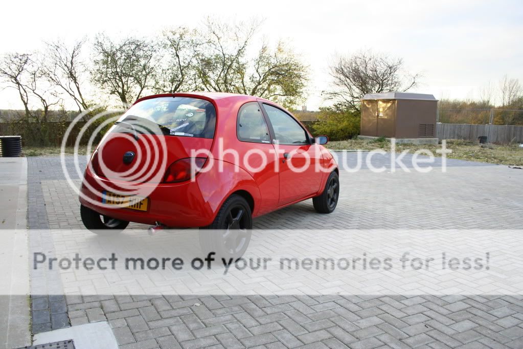 this is how the ka stayed for a long time (nearly a year before the money started to flow a little more (what with being on a uk students budget) first came a set of badly painted black escort GTI's which turned the car from a nippy little city car into a back road corner lover. then tinted lights and yer more stickers and a good wash or two.