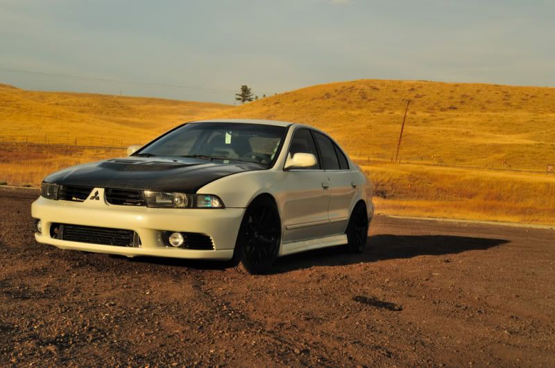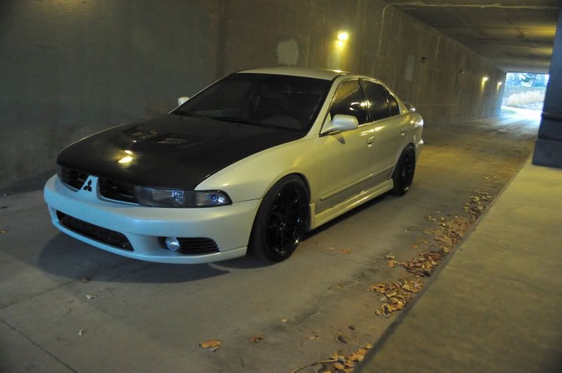 source an oem white hood and do the mitsu triangle delete, looks awesome on evo 8s, probably will on the galant too i bet