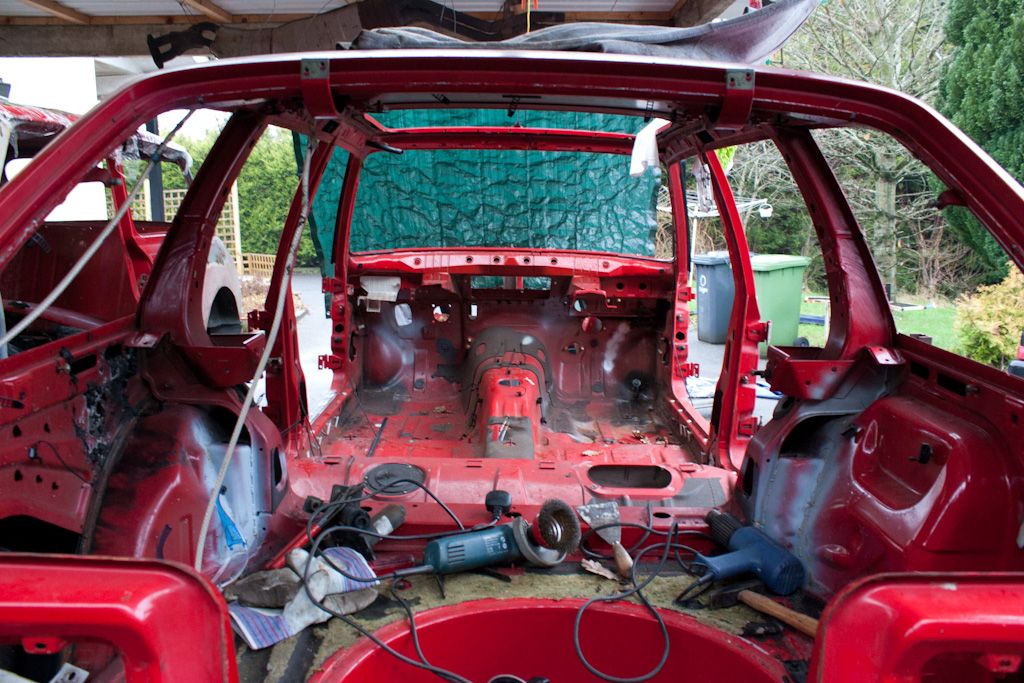 I got all the clips grommits etc removed from the interior, just the bonnet cable and some plugs left. Going to start cleaning up everything tomorrow, few little patches to tidy up and a small bit of welding. Roof needs a good strip down to clear of the rust left from the tray (none of which has started at the roof skin), some burnt plastic to clear as well and hopefully get something painted soon