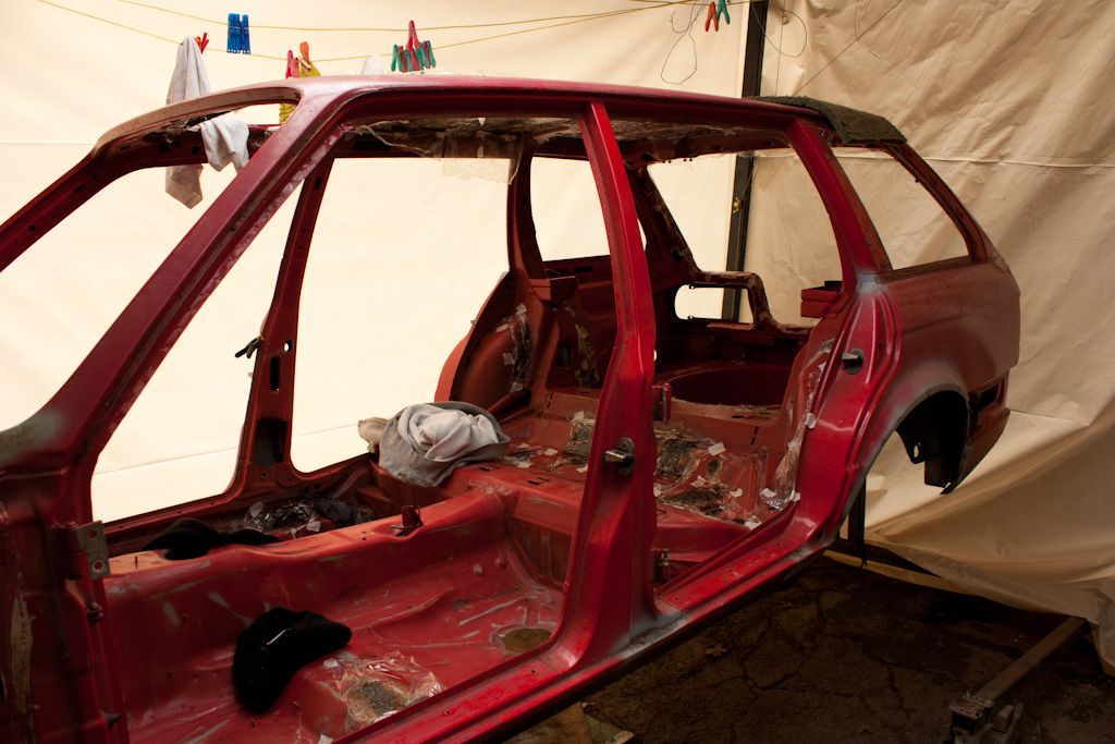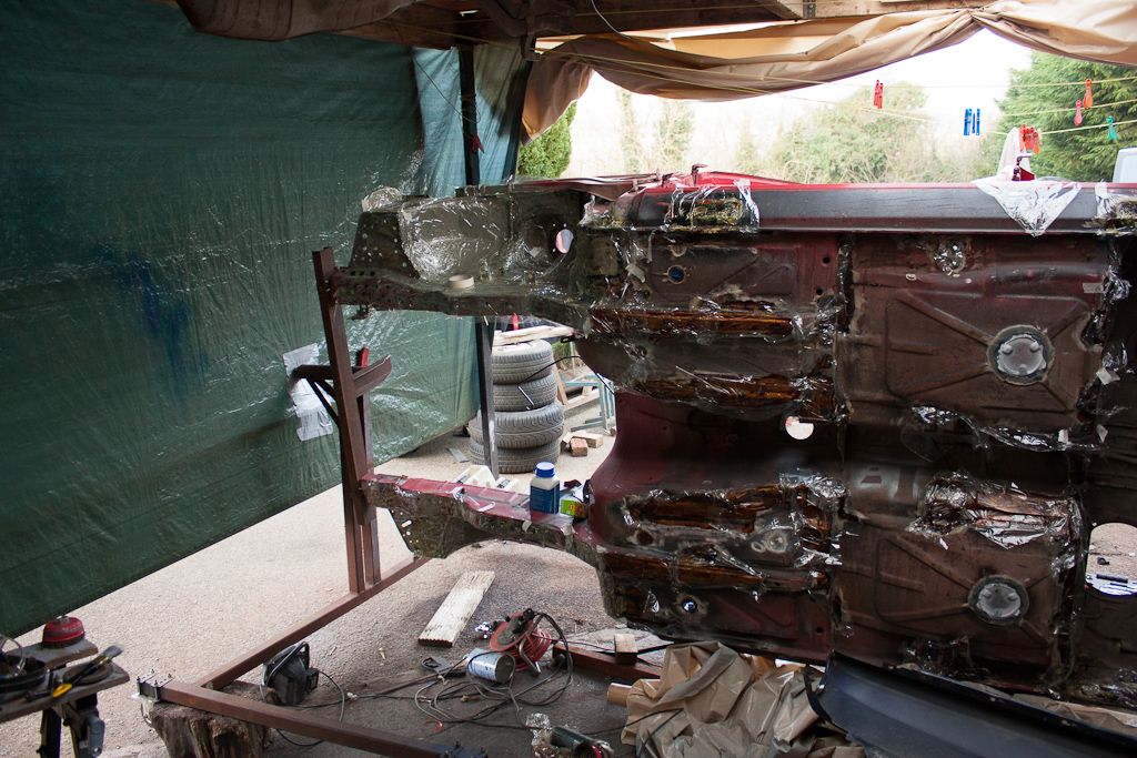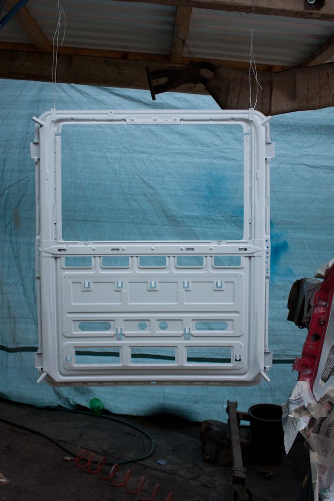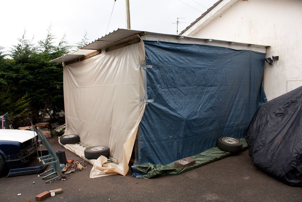 Plan was to get the interior painted up this weekend and so Friday morning was spent collecting a heater and closing of the lean-to as as to create a spraying area.