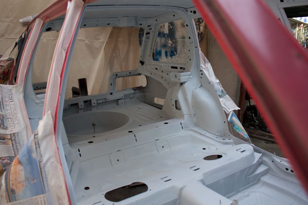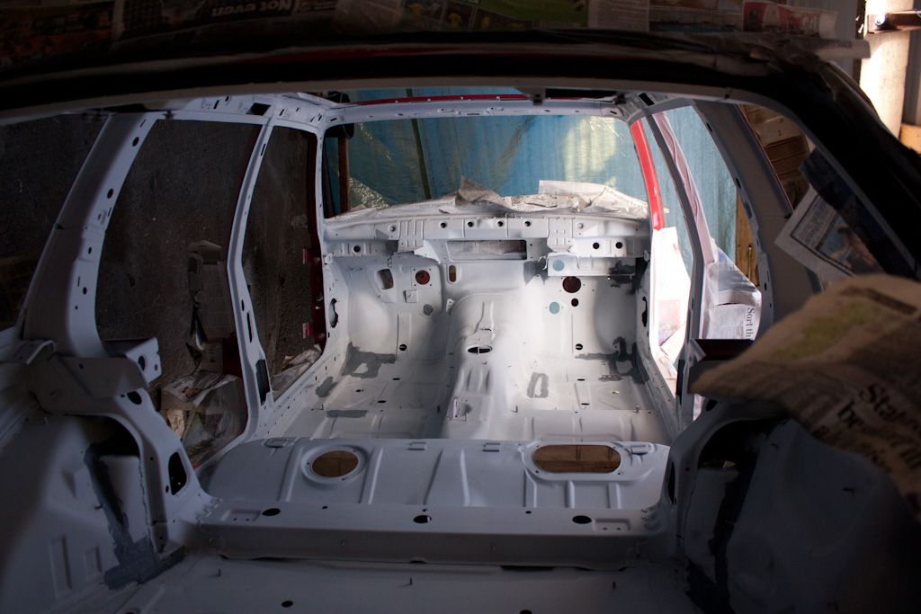 Except around the tail gate and a few other area's which I had forgotten or couldn't see with the little light we had, I got those area's primered yesterday. Also got started on giving everything a quick rub and wiping/cleaning every bit of the interior in preparation for primer, which didnt happen because my hardener had gone off and I couldnt mix it with the primer :