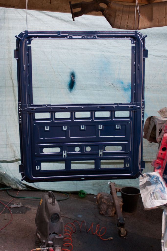 It went on a bit heavy but at least it's blue now :laughing: :laughing: :dance: :dance: It's not Mauritius blue, it's some sort of commercial type paint he mixed up to be similar to Mauritius blue.