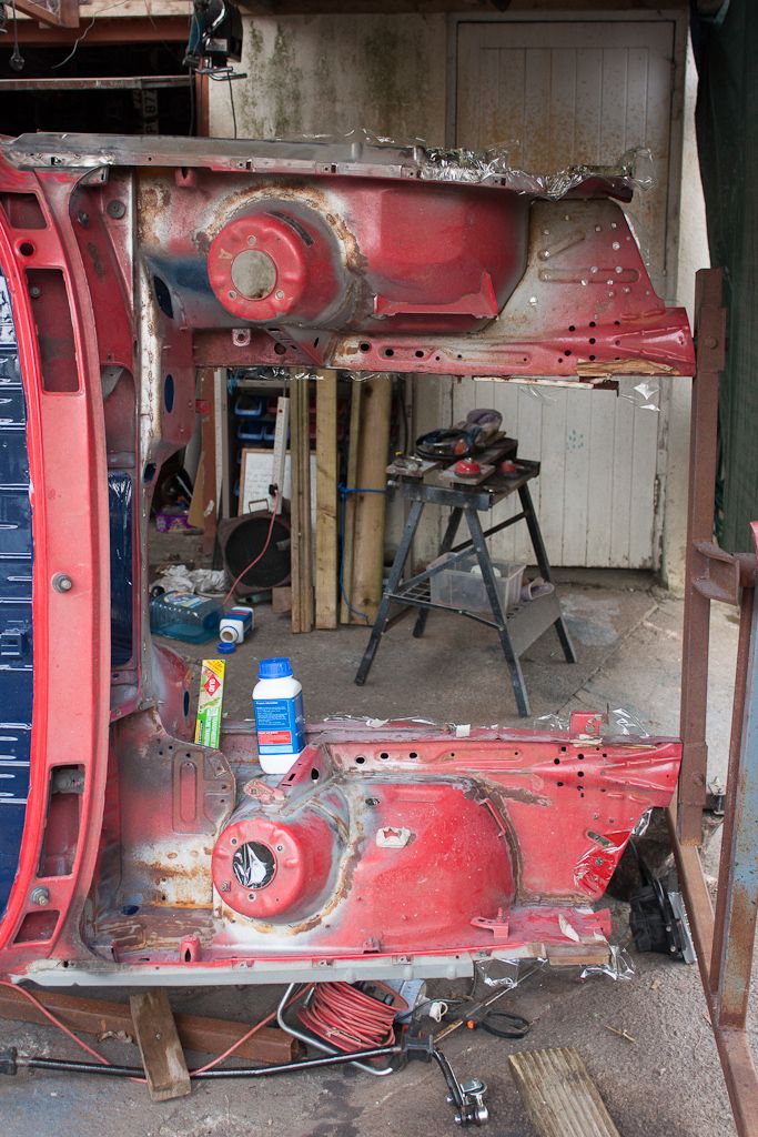 Just the front arches to do, got started on cleaning some old waxoil, what dirty stuff to remove Then some old rust studs to cut of and weld on new ones here and there and then paint + underseal.