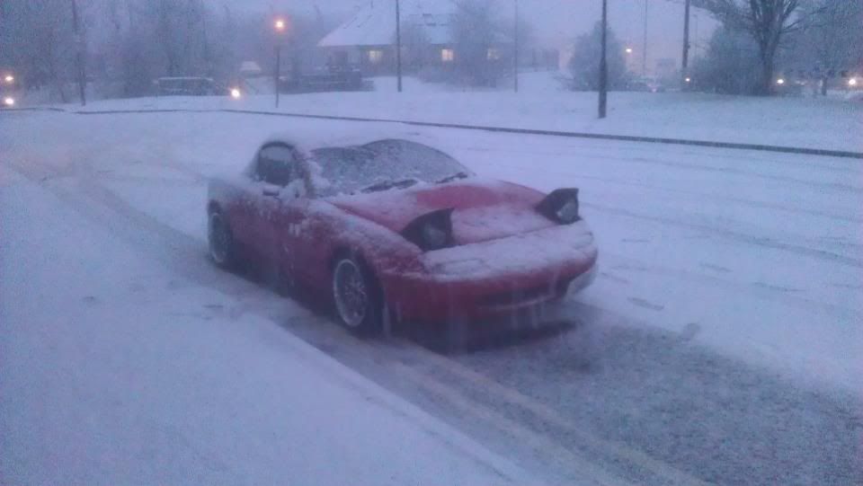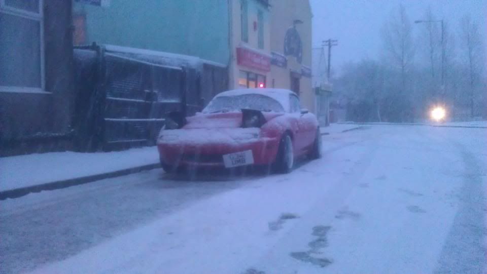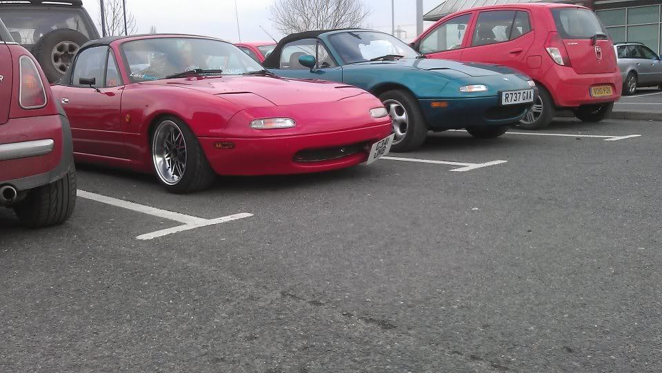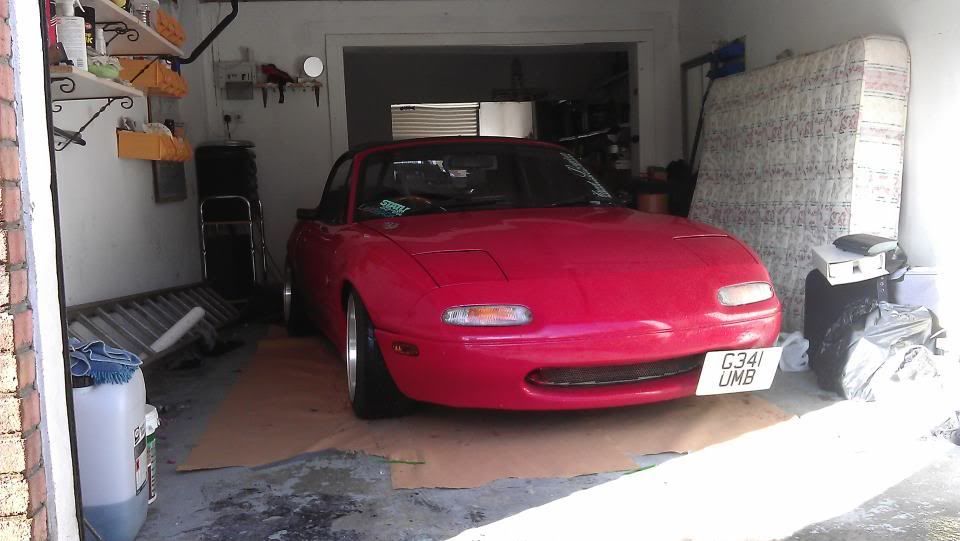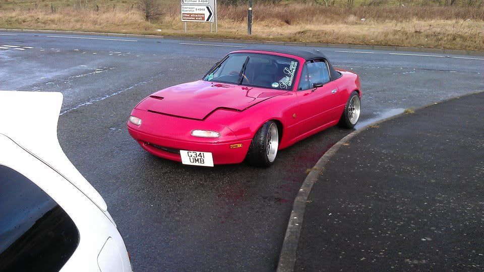 soo heres a pic of it looking sorry for its self about 800yards or so form were i hit the catseye im glad the eunos is a pretty lite car to push :paperbag: and im glad my girlfriend was with me to steer while i push