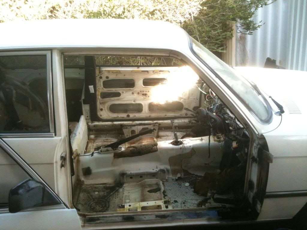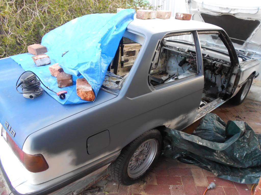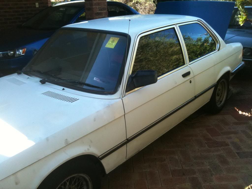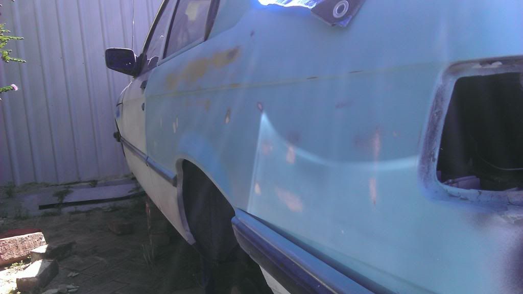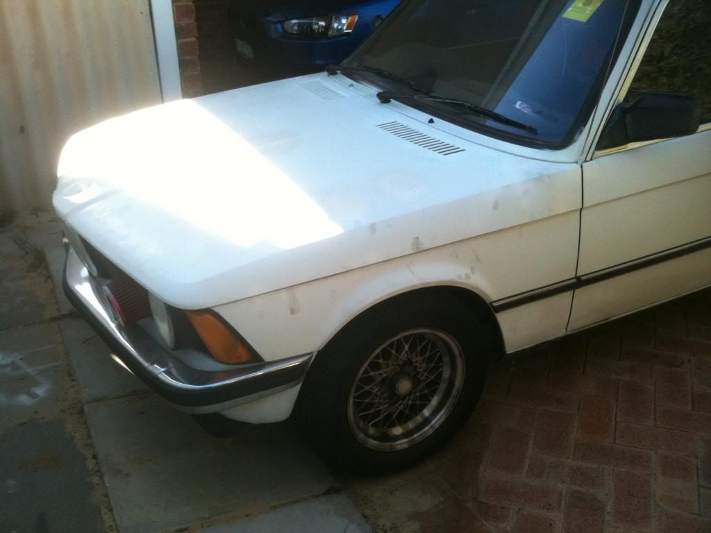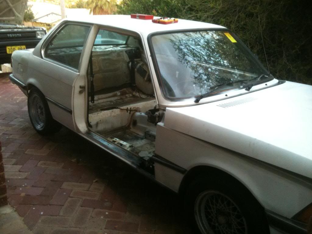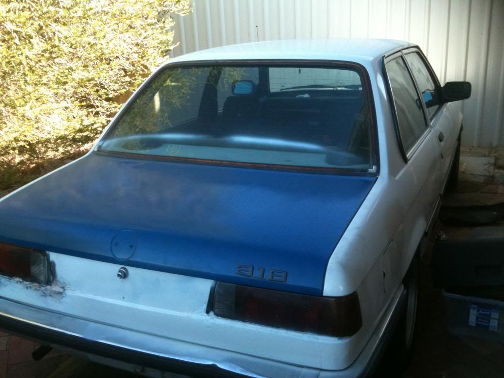 So ab few months back, my dads mate told him he was going to give him and old bmw. we already have an e30 325i, which we love dearly so we got excited. a few weeks passed and then one day i came home to an extremely beat up 82' 318 that was probably worth less than the BBS rims it was sitting oni. it had trouble starting , but within a day it got a general service and clean up. so before taking any pics i ripped out everything but the front seats and dash to make it light weight. shoved a pod filter n it and ccut the exhaust and springs. it lasted 3 days and one night coming back from my girlfriends, there was a booze bus. passed the breathelizer fine, and then was waved into the checking bay, where a guy about my age was standing next to his r33 with a yellow sticker. 5 mins later and a yellow sticker was slapped on the windscreen. so dad almost killed me and the plates were handed in after we found that about a quarter of the car was rust. In the 3 days i had the car i fell in love with it. It was pretty nippy and shit loads of fun to drive. so i decided it was to become a project ........... and that it could use a turbo. i dont have pics of the car when i got it so just imagine 2 inches higher. why the boot is blue is a story for another day.