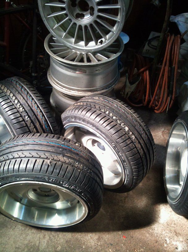I also stuck new rubber on my borbets...same size as previous, just a little stretch. I then put the front ones on my car, before i put the rears on I need to finish doing the brakes.