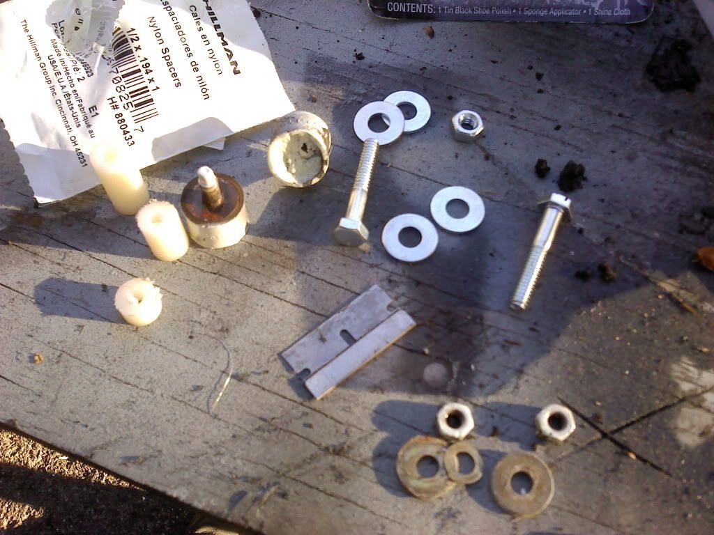 So I went to the hardware store and got a couple bolts, a few washers and some nylon spacers.