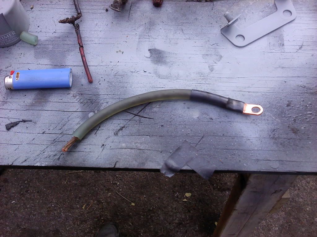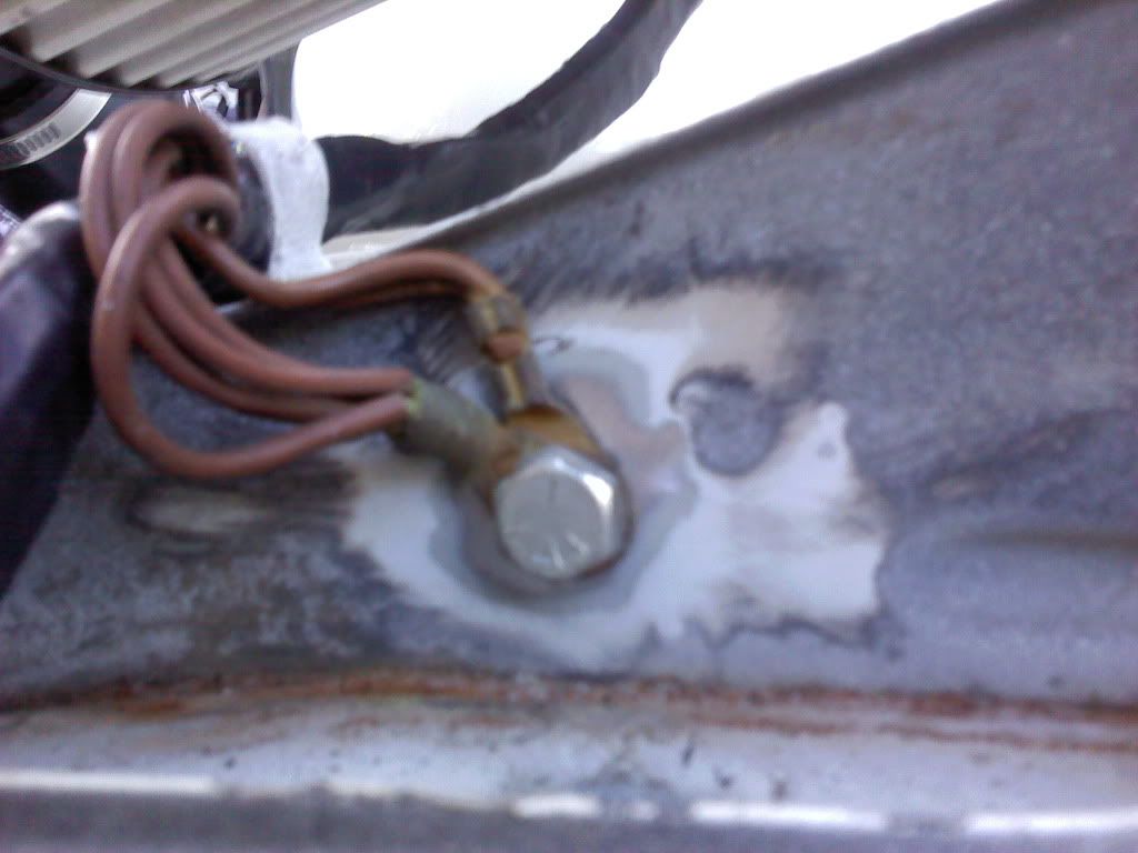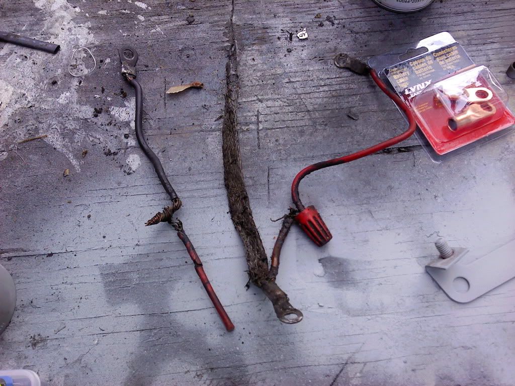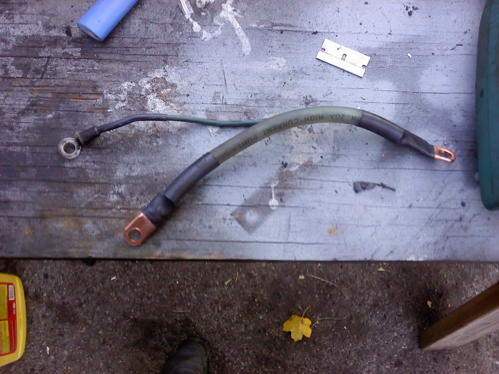 Worked like crazy from 2 when I got back from class till about midnight. Got all sorts of stuff done. My old grounds had been dicked around with by the previous owner and there were wire nuts and oil and corrosion all over them. So I made new ones.