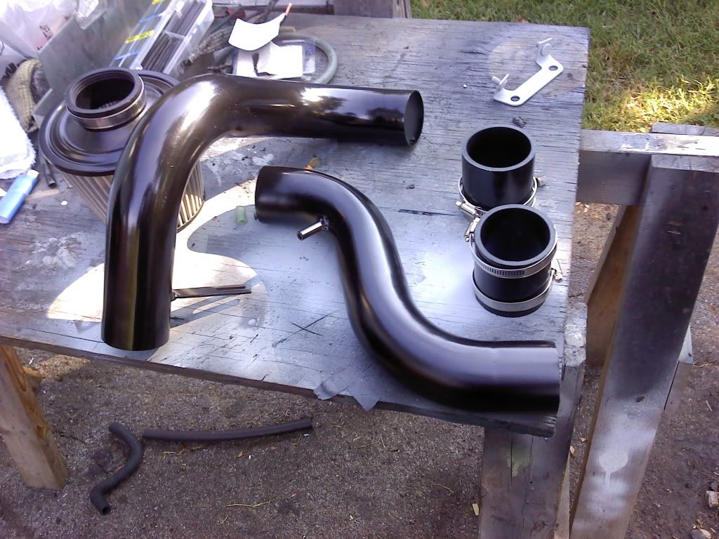 Being the best-damn-honda-kid-period that I am, I bought an integra intake and chopped it up to fit