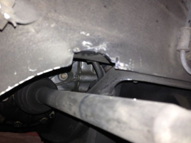 2. the axles were hitting the frame when trying to air down, so we got out the angle grinder and tried notching the frame as much as we could with what we had, only got about 3/4" but it actually made a big difference