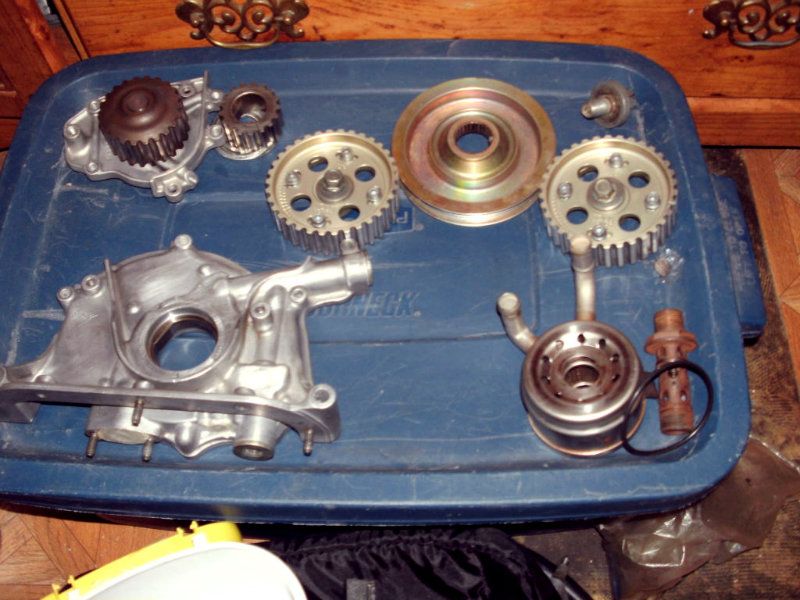 oil n water pump, oil cooler, cam gears, crank pulley