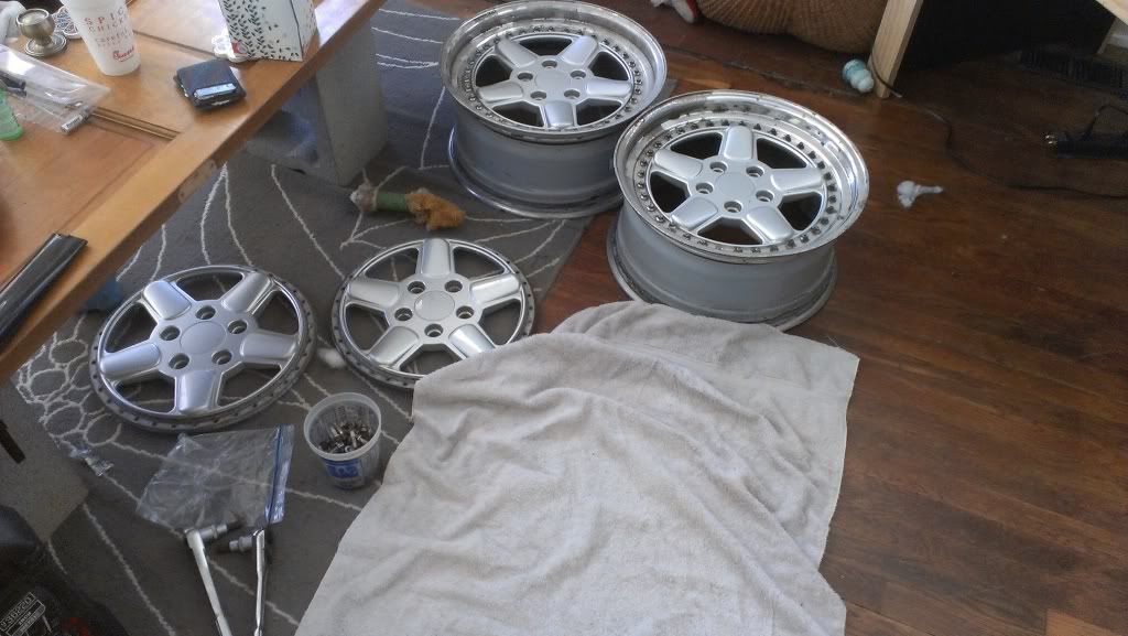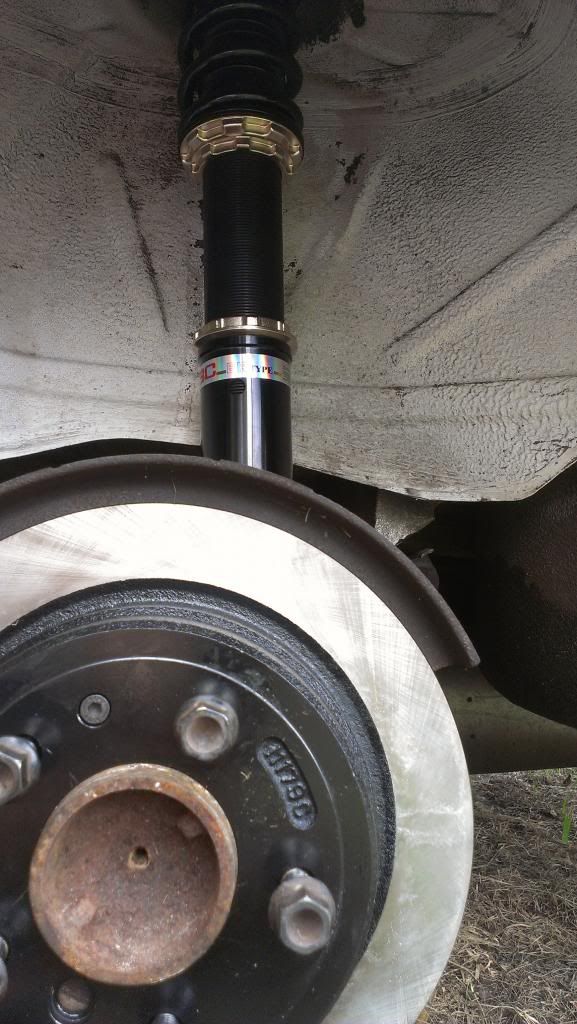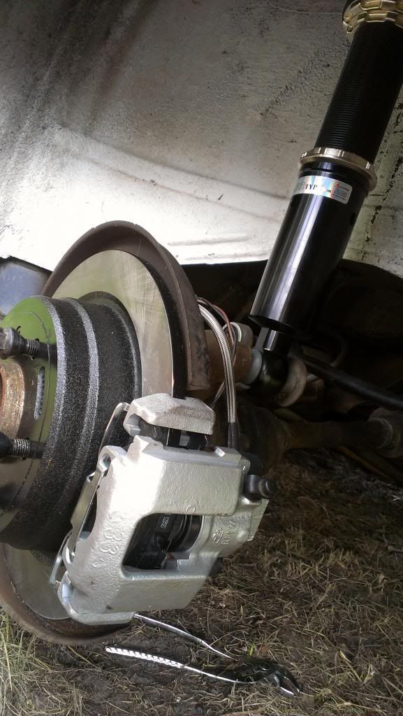 so since rear brakes were done, i was able to put the rears together, me being only 5'8, my arms had trouble reaching into the rear shock mount areas in the trunk. but the rear has new rotors, pads, rebuilt calipers, stainless steel lines, coilovers, rear sway bar links and a couple of other bushings and small odds and ends