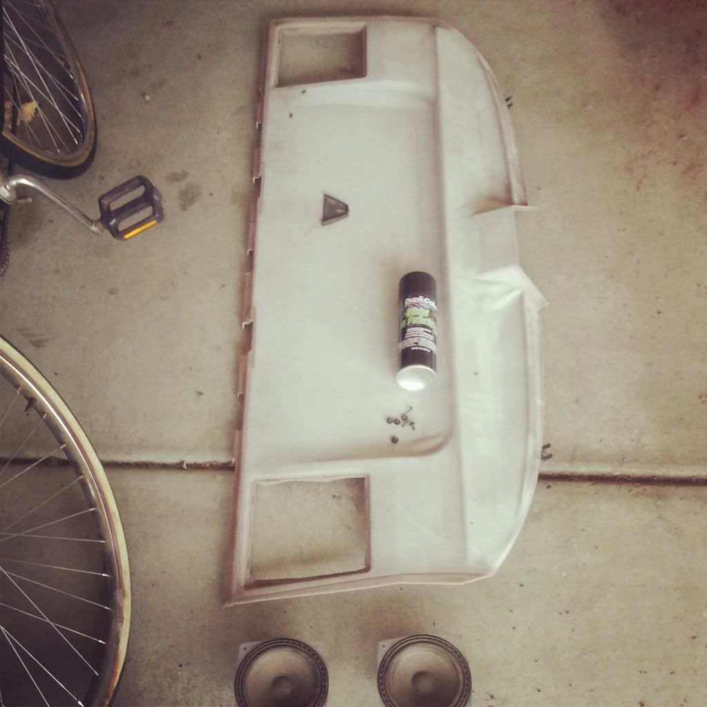 found a tan one out of the junk yard and nabbed it for 11 bucks. bought the speakers as well. actually got it all for 11. bought some fabric paint and went to town. had to reconnect all the wires since the p.o. is an idiot. anyway, small update.