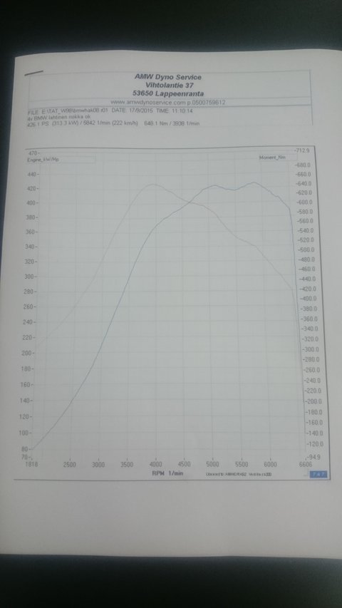 It gave 426HP/648Nm(thats 478lb ft) @0,8bar on dyno yesterday.. (flywheel power)