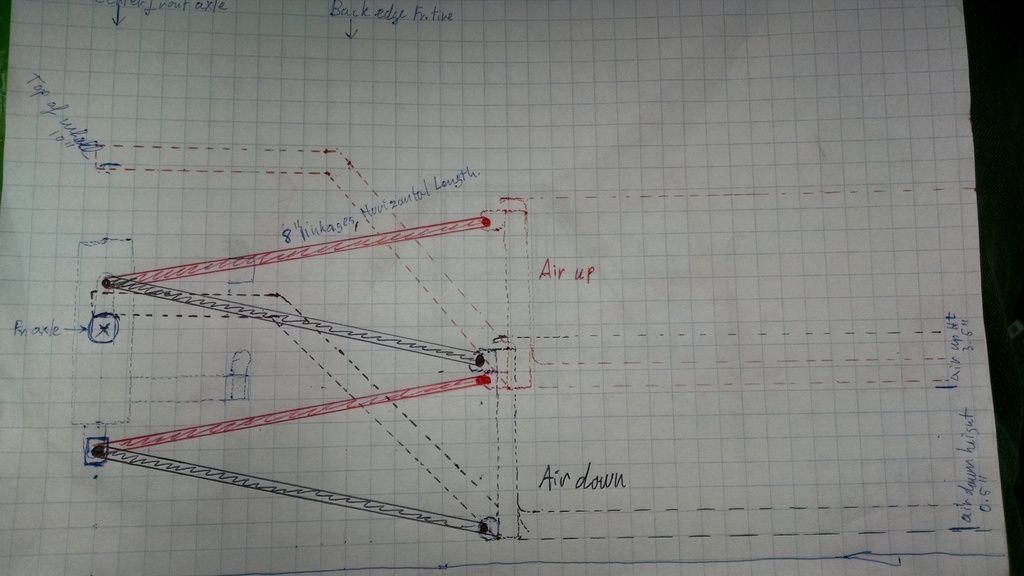 So full independent suspension, four beefy air cylinders required. Basic design, made during a particularly boring meeting: