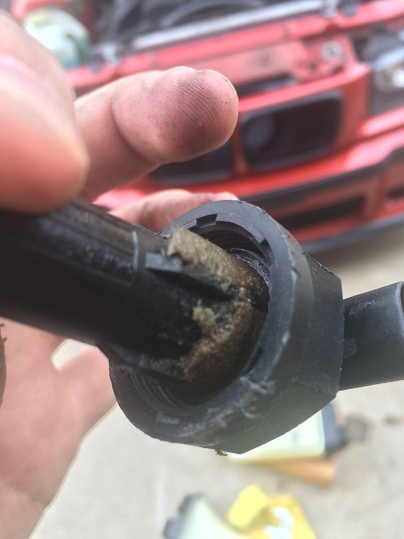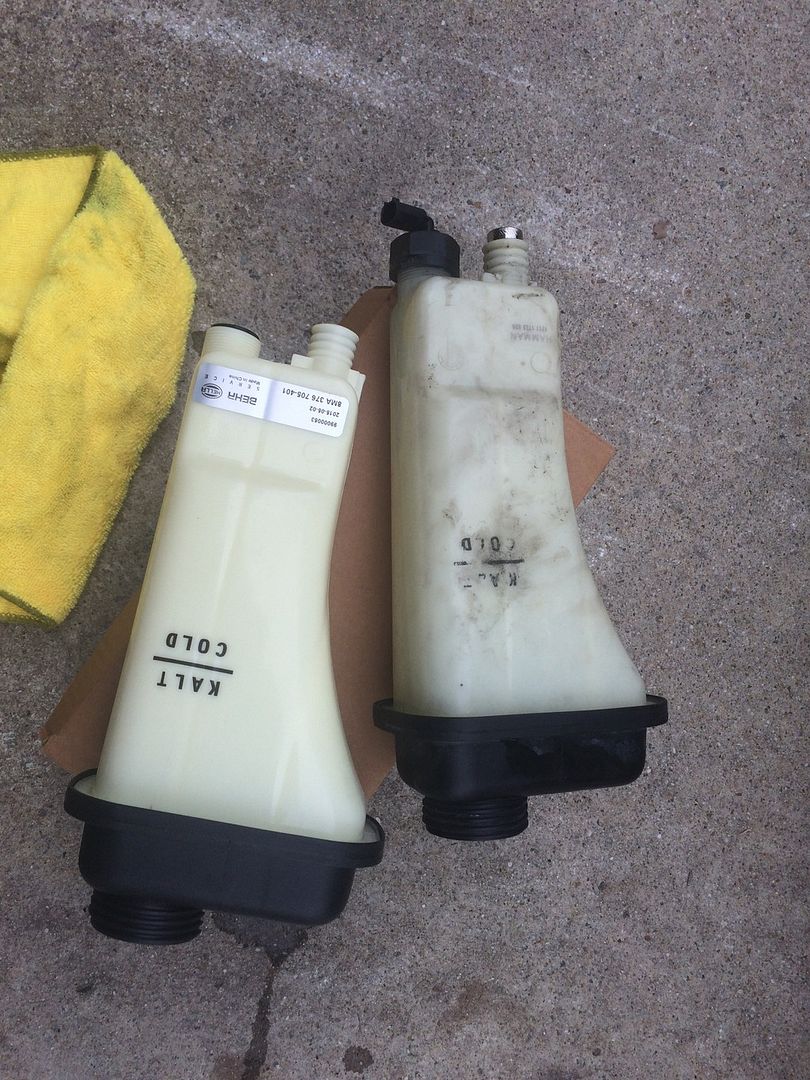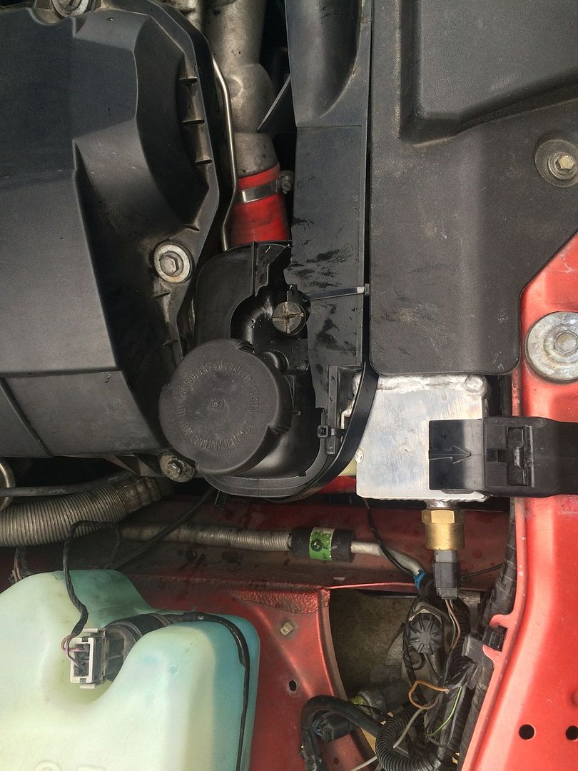 Then today I got my new expansion tank on. The clip at the top snapped off so until I get around to plastic welding it, zip ties are the answer. this is also how I found out someone put stop leak shit in the coolant at some point, because the sensor was covered in it.