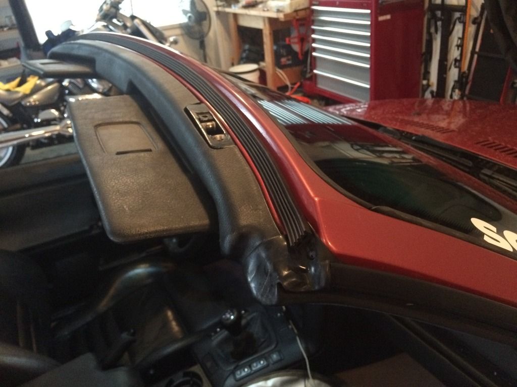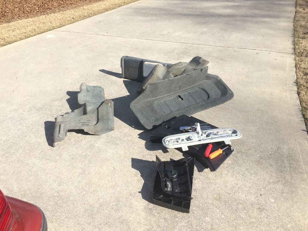 And that's when I found out why my trunk turns into a swimming pool when it rains. Someone had cut holes through the trunk to reach the top of the shocks instead of just opening the tonneau cover. But guess where the drain for the water that gets under the tonneau cover are. Right next to the shocks. So now all the water just pours straight into the trunk. Wonderful.
