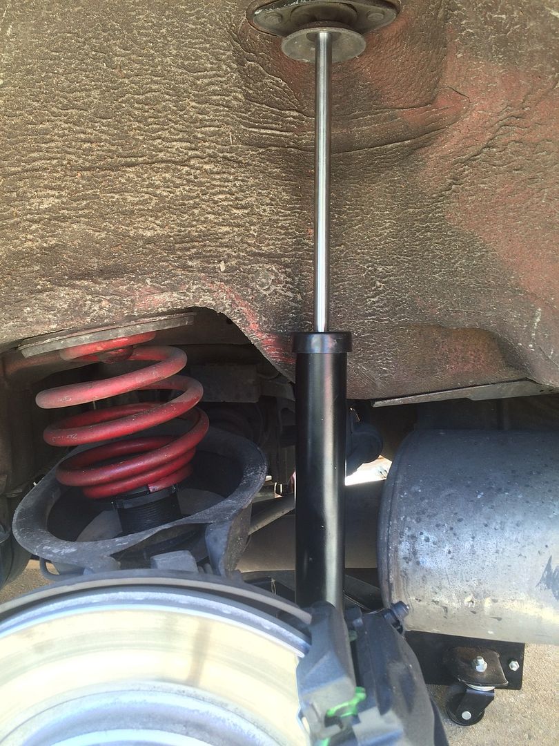 That car needed new rear shocks bad. Like a light breeze would get that thing bouncing up and down endlessly. So I finally got around to replacing my raceland shocks with brand new raceland shocks that I got with the car and never got around to putting on, then put the old ones on the white car