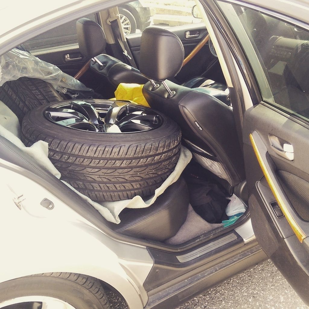 Ended up scoring some 245/45/18 Yokohama tires with almost full tread for 100.00 so these would have to do for the time being. Got them mounted and they sat in my trunk and backseat for a few days
