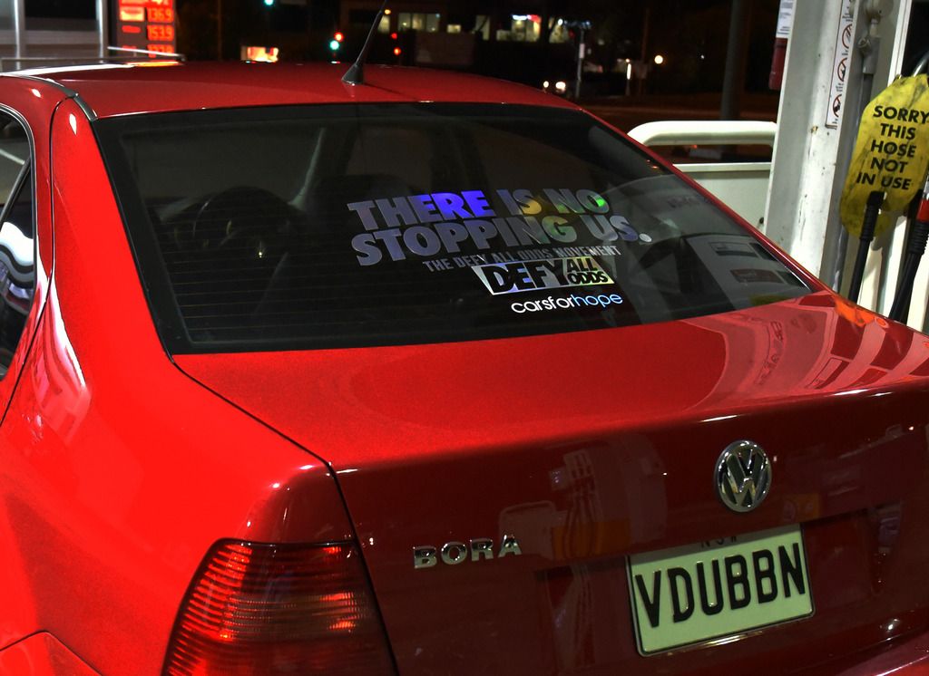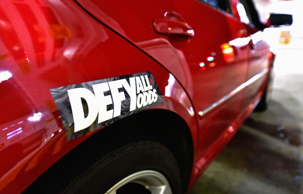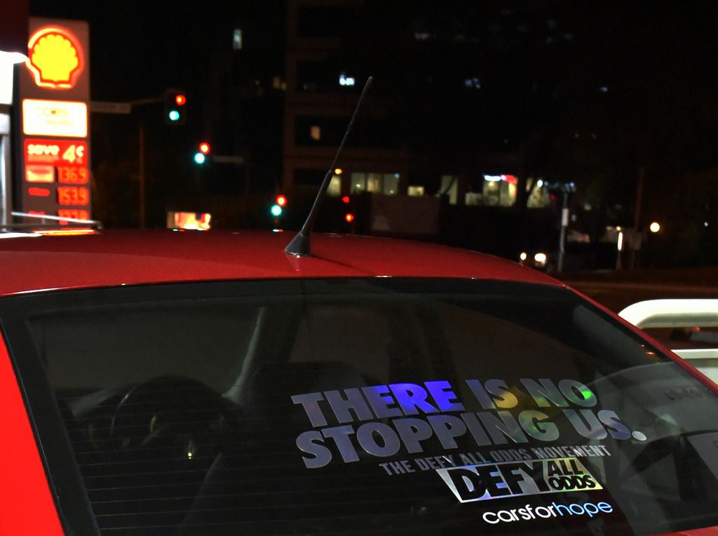 and then a quick photo of the defyallodds sticker and my carsforhope sticker