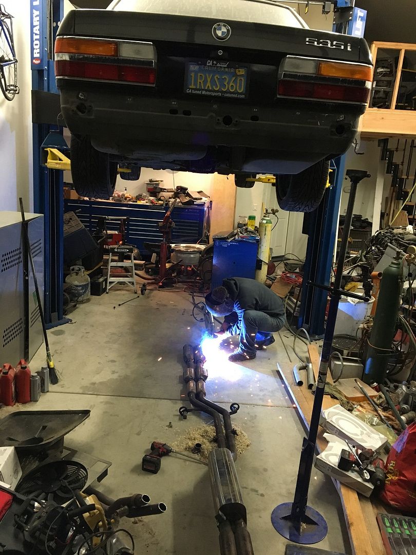 my dad has been working on the exhaust for me and he finished it tonight but tomorrow we have to get exhaust gaskets for the headers. i also got my coilovers but i need to adjust the height for sure. i am super busy this week and i will probably get it all done next week