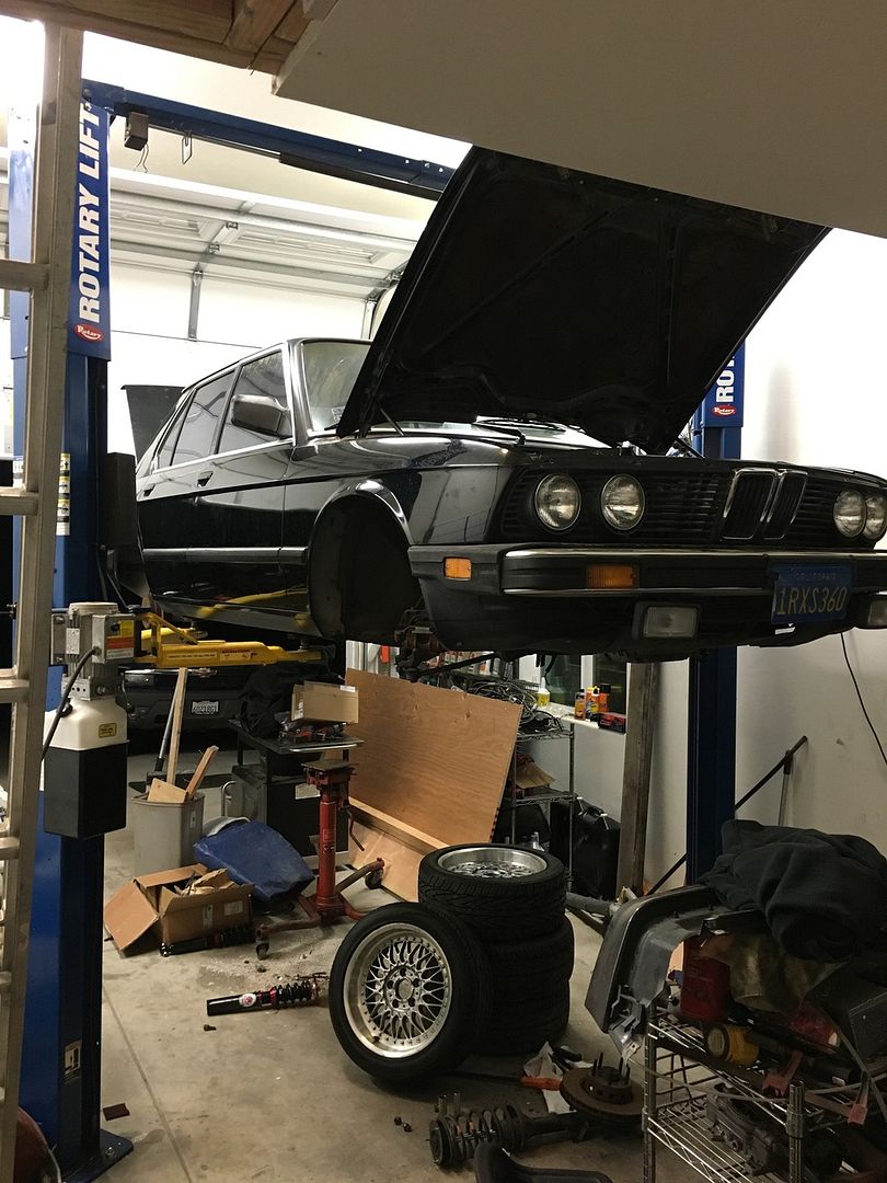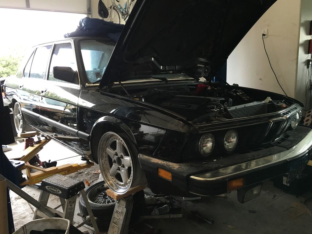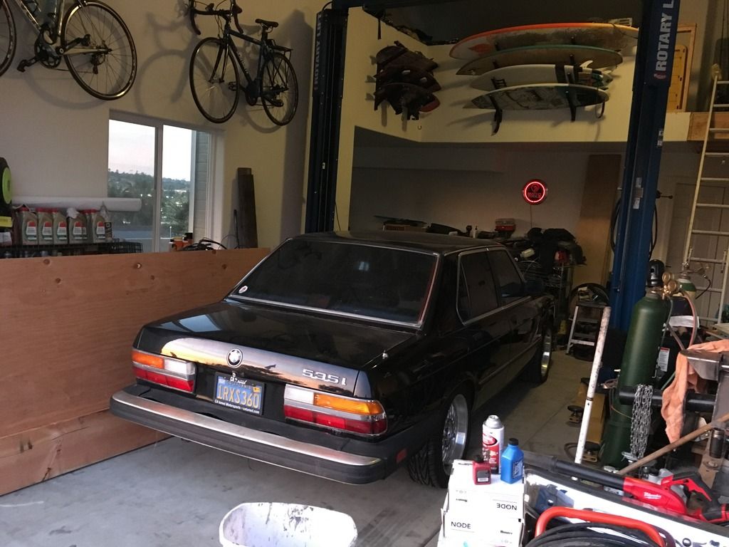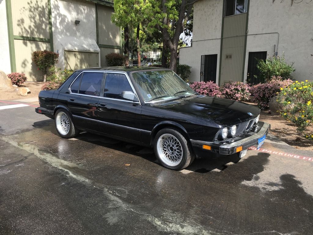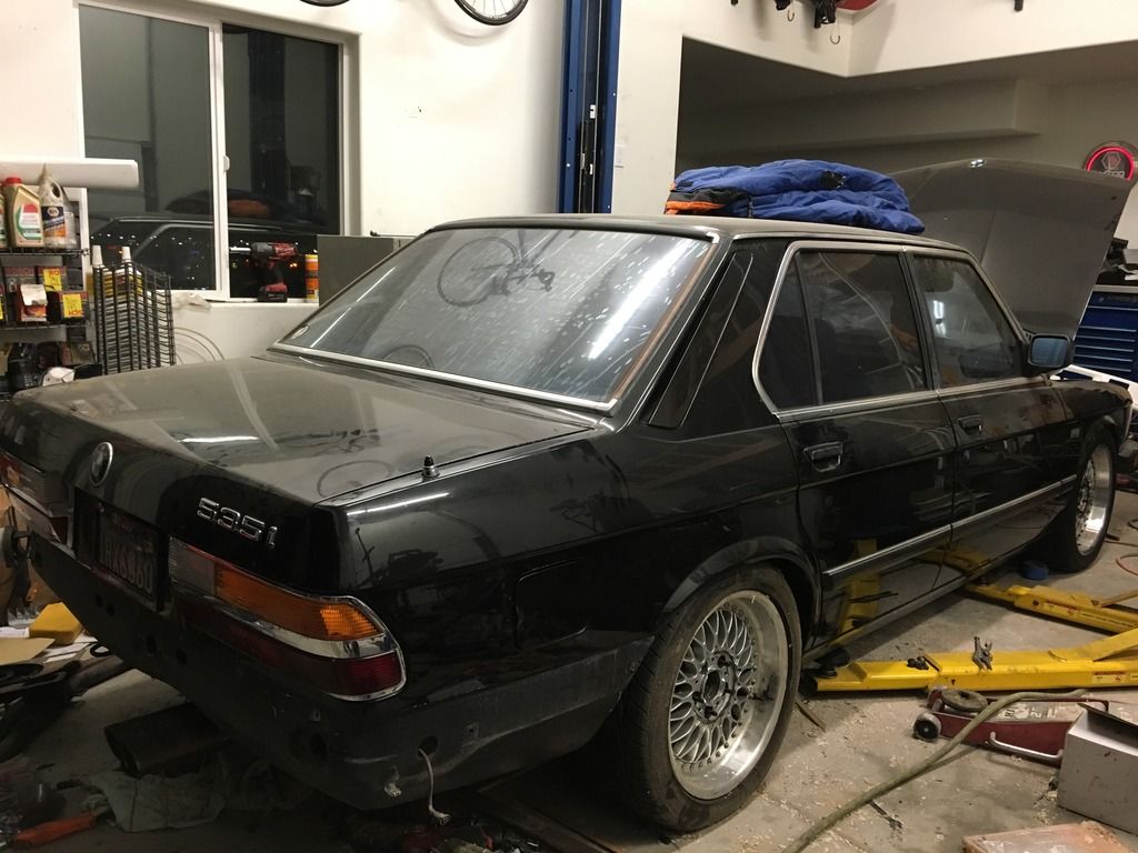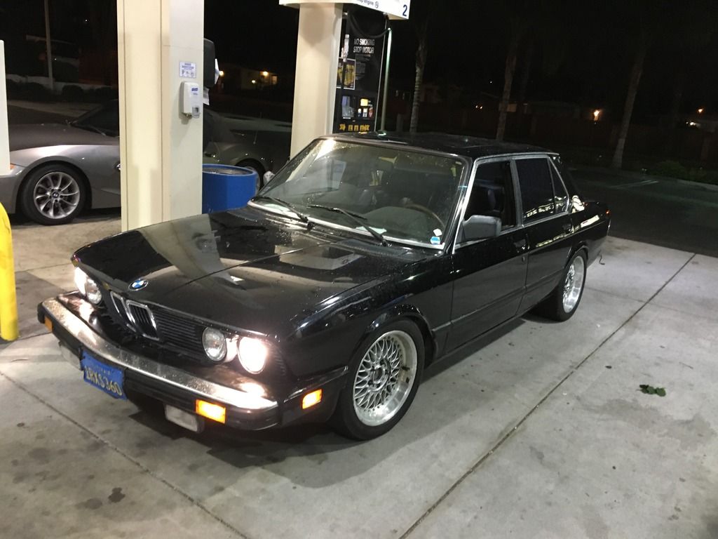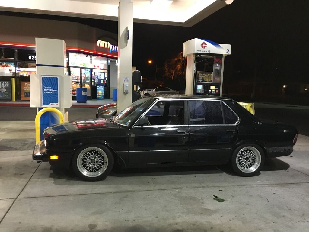 some exciting updates on my e28 this weekend. so i stayed the nights at my dads house on friday because i was helping him get a bunch of retaining wall bricks early in the morning so instead of getting some sleep for said activities or maybe finishing my online class that is do the next day i decided to stay up until 3 AM getting some stuff on the car sorted.