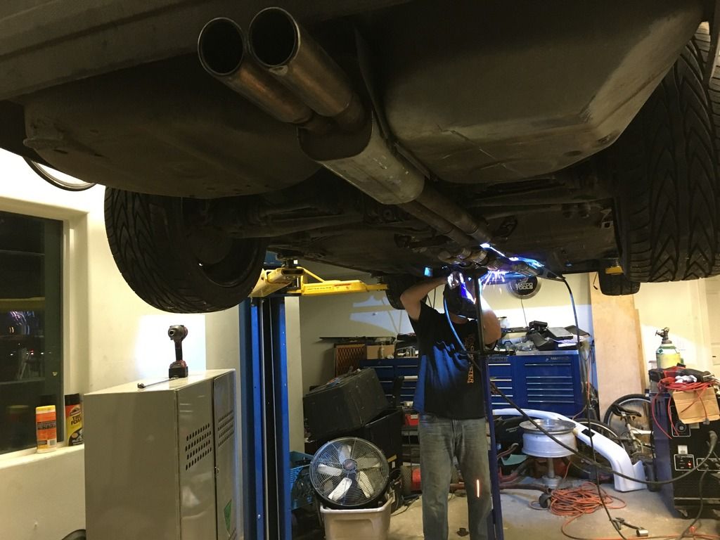 when testing the exhaust the other day we found a couple pin holes when it was tight to get the welder in so we dropped the exhaust and got those filled: