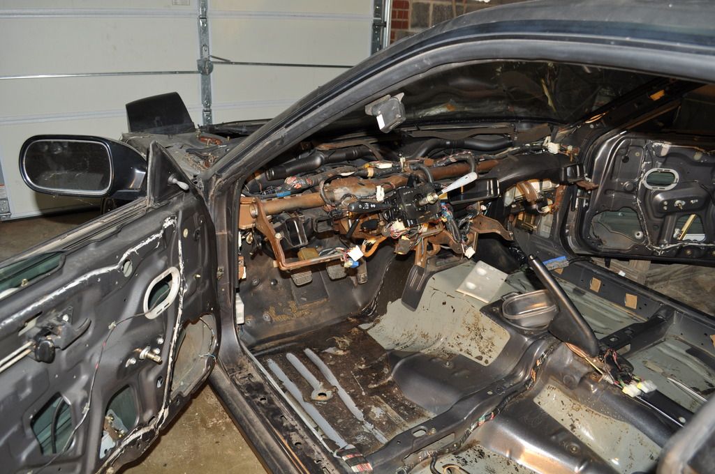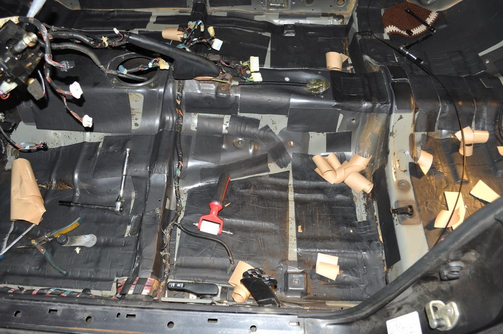 Here's some prior pictures I had of the interior tear down. Used dry ice and isopropanol alcohol to make a gel to pull up all the old sound deadening. That part was super cool, science FTMFW!