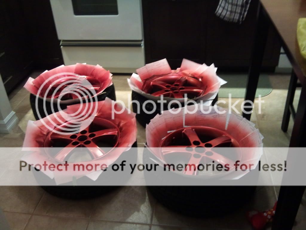 well i ran out of time before winter and i needed to paint my wheels so i did it out side in a snow storm... one issue is tape does not stick well lol but here are some shots