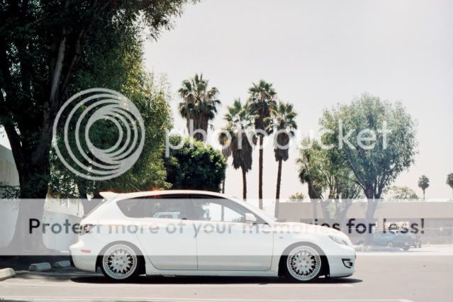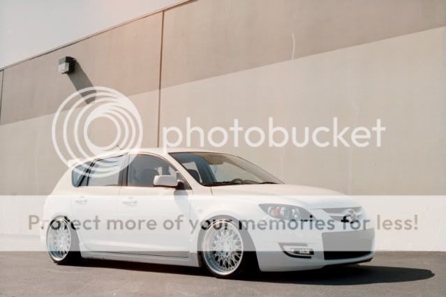 i love mazda 3 and especially attracted to all white cars. i have tons of love of VIP Modulars but i dont feel like that flows very well. they're baller wheels nonetheless so major props