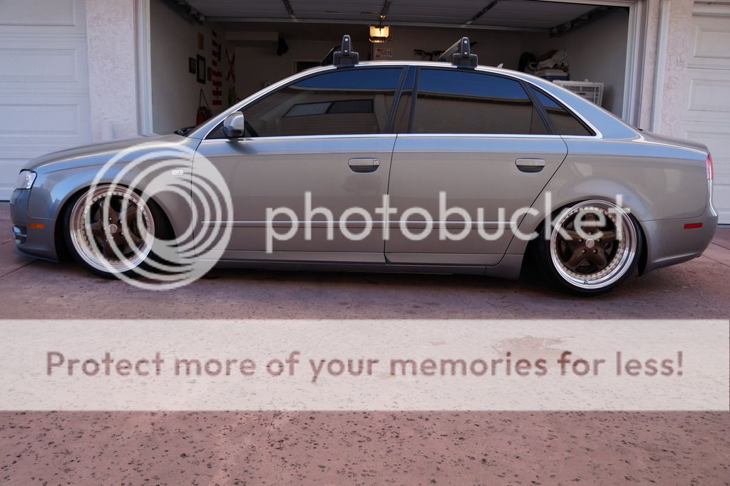 Airlift performance front struts and bags. Airlift performance rear bags and shocks. 5 gallon tank in the trunk with Viar 380c compressor and hard lines on custom trunk floor. V2 managment. I have the OEM trunk floor cover. Front strut bushings are custom made by a machine shop in NJ, I ordered these from a guy on Audizine to replace the Airlift ones that fail. These have been on for 5k miles with no issues and will outlast the new Airlift versions. Air installed at 72k.