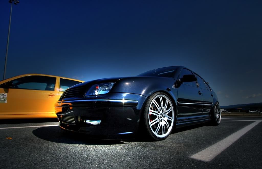 Wheels are still on the car so I don't have pics of them up-close at the moment but I should after next weekend. Tread on tires are almost brand new but while I was working out the fitment, the fenders rubbed down the sidewalls some (2 rears only). I will not separate tires from the wheels, I am willing however to separate the set into 2 sets of 2 wheels (2 buyers looking to keep their rears and replace their fronts with 2 of mine) Both people have to pay me before I will ship them out though. These would look great on a Mk4/5 dub. Below are some pics on my car. (For anyone interested, in the last couple pics rears are et12
