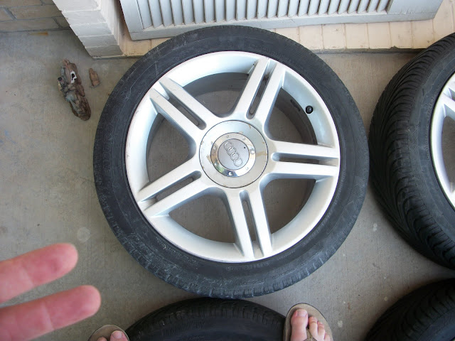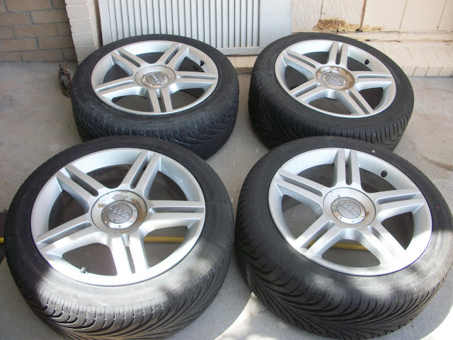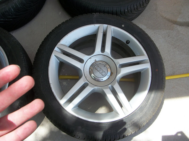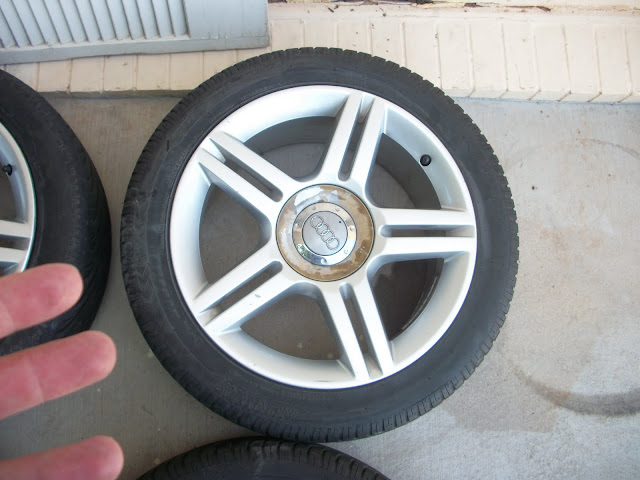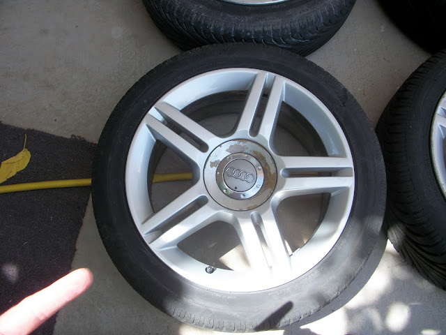 I've got a set of A4 takeoffs with tires and centercaps, the rears have some camber wear, but the tires are still relatively new, price is $OLD with tires w/o + shipping of course....on to the pics