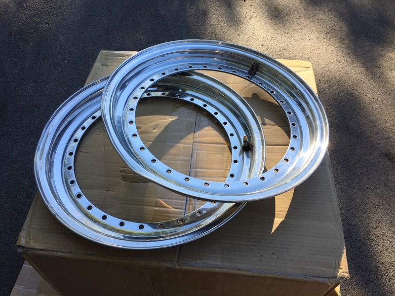 Pair of 15x1" OE BBS 30 hole lips. Polished finish in good shape. Both lips are bent pretty good but I'm sure they're fixable. $60 shipped per lip or $110 shipped for the pair.