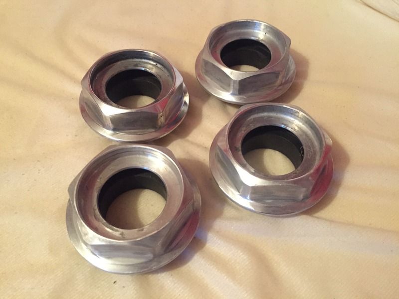 Full set of small thread full height OE BBS hex caps. Stripped to bare metal and ready to polish/paint/whatever. $120 shipped.