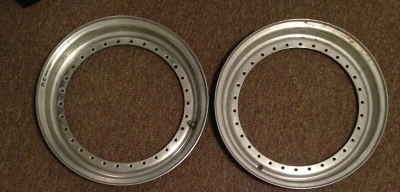 Pair of 15x1" OE OZ 30 hole lips. These came off of 15" OZ Turbos. They are in original condition, old and weathered so they need refinished. No curb gouging or bends, but have some scratched along the edges. Will not fit BBS 30 hole unless bored out 1mm. $60 shipped per lip or $110 shipped for the pair.